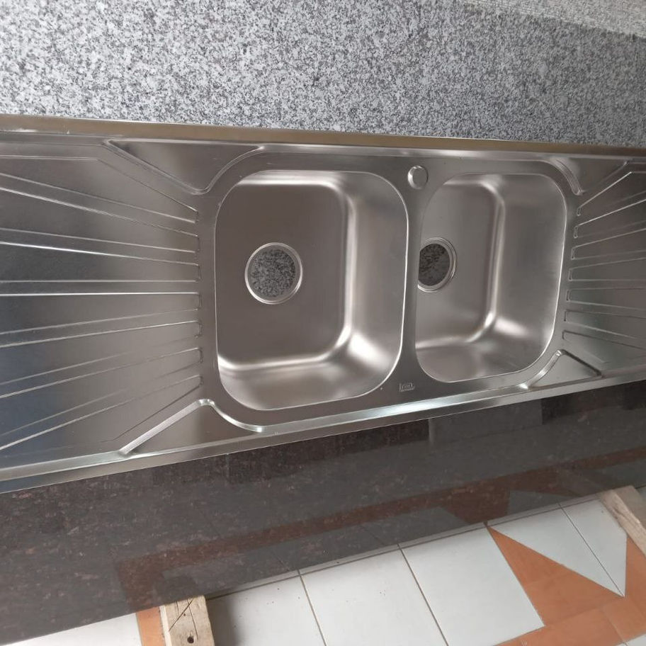 Its a heavy duty double bowl double tray stainless Steel kitchen sink. It comes with a double bottle trap.